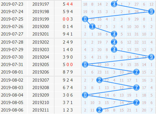 上期在十位上开出号码2,2路号码号码开出,十位上2路号码也是有升温了,不过开出还是没有1路号码强势,基本隔期就有开出的;1号球开出都是间隔十期左右的,现在空缺了11期,可以小防1号球;7号球连着两次都是隔期开出的,本期也看好7号球隔期开出;2号球上期是有出号,本期小防2号球的连开。