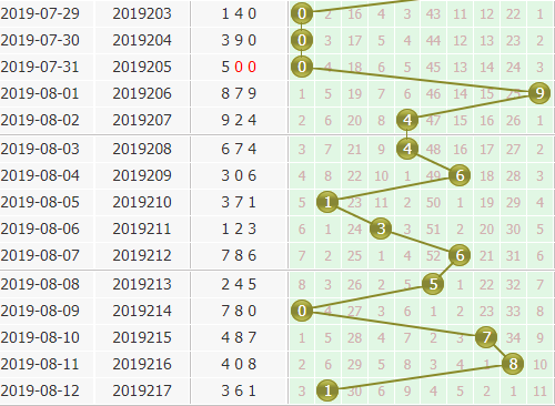 个位上期开出号码1,1号球在个位间隔6期出现,个位最近的出号位置变动比较大,本期小号连续开出几率不是很大,出号位置右移的概率比较大,流星雨本期结合号码走势分析,比较看好中大号走势出现,不看好中小号走势,特别是本期重复号1开出几率很小,建议大家可以作为重点杀一码对象。