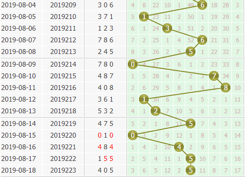个位上期开出号码5,5号球是重复开出的,个位上复开其实不多,但是每一次复开之后就会集中复开几期,所以5号球上期连开,本期可以继续看好它的再开;4号球之前也是有复开的经历的,本期也小防一下;0号球出号是明显升温的,开出间隔从八期到五期,现在空缺三期,看好0号球的表现,重点推荐个位胆码:0457