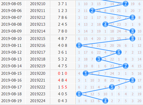 十位上期开出了4号球,分析十位上的走势来看,十位上号码现在是慢慢走大的,之前走小的时候就缓下来了,那现在走大趋势肯定也会继续开出;5号球就在4号球边上,也看好5号球;7号球近期开出也是升温的,出号也慢慢增强,看好7号球;8号球现在也是继续开出,本期可以看好8号球的表现。