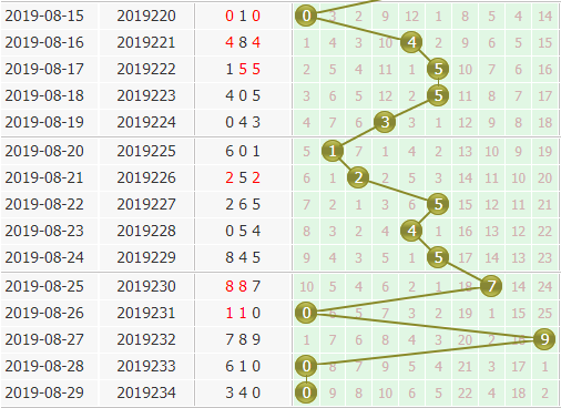 个位上期开出重复号0,小号连续出现,号码0最近在十位的号码走势比较热门,这样的情况后期可能会将中小号区域号码走势带动起来,所以本期大家还是可以继续关注一下中小号走势,不太看好中大跨度号码走势,流星雨本期结合号码走势分析,不太看好走势图右边号码走势,具体推荐本期个位杀三码:179