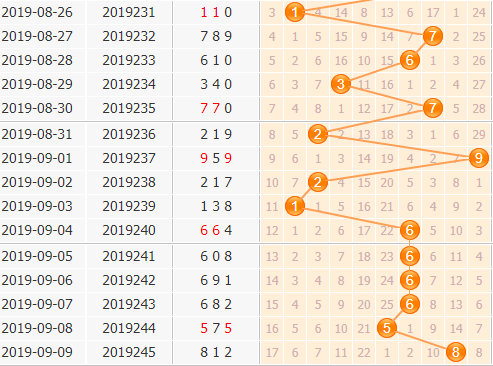 百位上期开出号码8,8号球间隔14期出现,本期重复号开出几率比较小,不建议大家关注号码8继续出现,大号连续开出六期,本期大家可以继续关注中大号连续出现,大家本期在选择百位杀号的时候可以重点参考小号位置,金手指本期结合号码走势分析,具体推荐百位本期杀三码:015