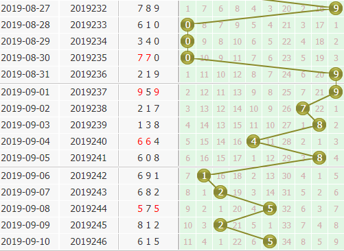 个位上期开出奇数号码5,隔期号出现,个位最近的出号位置比较有规律,本期预计出号位置会小幅度左移,中小号走势出现的几率应该会比较大,建议大家重点关注。流星雨本期结合号码走势分析,不太看好重复号走势,大家可以重点杀一码:5,大号位置本期连续出现的几率不大,建议大家本期可以重点杀走势图右边位置号码。