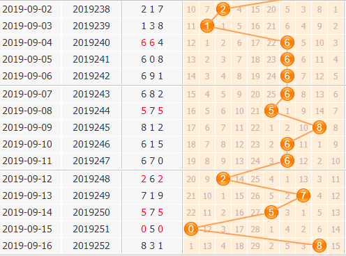 上期开奖号码是831,百位上开出了8号球,号码也是走冷的,近期号码开出也是偏冷号,出号号码都是温号正在升温的,本期也要留意这类号码。5号球就是一个明显在升温的号码,本期重点关注;7号球刚刚作为冷号开出,本期也要小防一下;0号球是一个大冷号,之前也是刚刚开出,留意隔期出号。