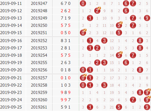 十位:上期十位开出了间隔0期的大奇数9号球,号码复开了,十位上号码复开也比较频繁啊,但是复开之后很大几率是要走冷;本期十位推荐号码:234567