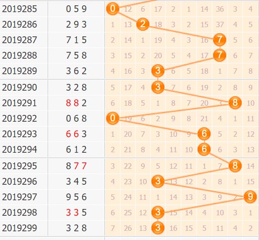百位上期开出号码3,重复号3出现,最近百位的重复号走势还是比较稳定的,参考近期的百位号码走势分析,后期大家可以重点关注一下出号位置大幅度右移,也就是说本期百位中大号走势比较占优,后期大家可以小孔明本期参考号码走势分析,重点推荐百位胆码:04789