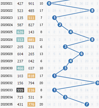 上期开出了776,十位上开出了7号球,结合十位走势来看,1路号码开出了,而且近期1路号码和0路号码是交替着开出,看来接下来0路号码开出的可能性是最大的;9号球就在走大趋势上了,之前号码连着都是上升,轮到9号球开出的可能性很大;1号球和3号球都是近期有开出的号码,而且开出比价集中,可以留意一下。