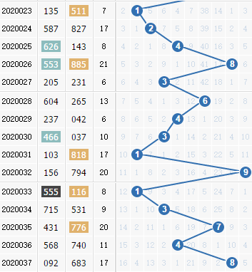 上期在十位上开出号码8,振幅开出了4,近期十位上号码走势起伏不是很大,都是保持着小振幅的出号,接下里号码取值也在8号球附近;6号球和9号球开出稍微冷一点,间隔期数都是超过五期的,本期小防它们的回暖;3号球近期表现不错,出号比较多,本期看好它。