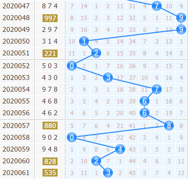 上期开出了535,十位上是开出了3号球,号码近期都停留在小号码的,这一次小号码也是有四期开出了,接下来出号就要看好大号码;5号球作为当前最冷大号码,近期肯定要多加关注;6号球和8号球都有升温的趋势,可以看好一下。