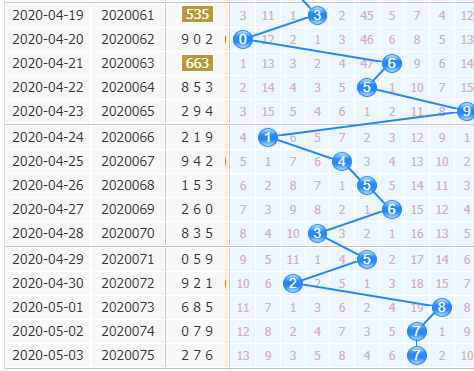 第20075期开出了276,十位上开出了7号球,开出了一个大数,近10期里大数开出了6期,小数开出了4期,大数走高,从走势来看,目前是连续开出了3期大数,本期继续看好大数的开出。