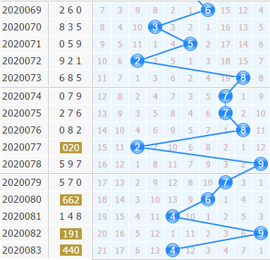 上期开出了440,十位号码开出了4号球,号码也是走小了一期,不过根据十位走势来看,明显大号码开出强势,小号码都没有连开的机会,本期也要关注大号码的表现;7号球和9号球是近期出号势头最足的号码,开出也是最有可能;5号球是一个冷号,接下来也要小防冷号的回暖。
