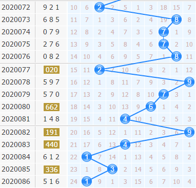 上期开出了516,十位号码开出了1号球,1号球是隔期开出的,当前号码正是走热的时候,出号就会热一点,本期看好小间隔出号;3号球是刚刚回暖的,可以看好它的隔期回补;4号球是蠢蠢欲动有要开出的趋势,可以小防一下;6号球有些升温的趋势,小防一下。