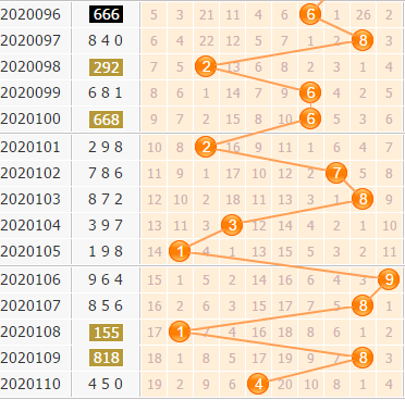 上期百位开出号码4,号码还是偶数,而且这一次开出偶数是连着的,看来偶数号码有些增强,本期也要看好偶数号码的表现。8号码是近期开出最热的,也是最为频繁的,本期继续看好8号球的热开;6号球和0号球就偏冷一点,不过百位上冷号比较活跃,可以小防。参考近期的号码走势分析,建议大家可以重点关注本期百位胆码:0368