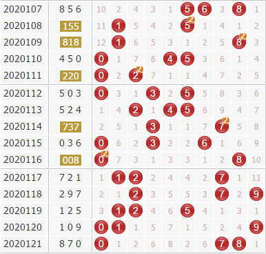 十位:上期十位开出了间隔17期的大奇数7号球,奇数号码开出没有偶数号码,当前都是独期,这一次看好偶数号码。本期十位推荐号码:023478