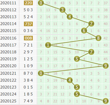 个位上期开出号码9,0路号码的开出,而且0路号码在个位上表现还不错,有连开的机会,6号球和3号球都是有机会的,开出也是大间隔居多,看好它们的表现;近期其实开出最多的是2路号码,5号球开出又最强势,看好5号球。