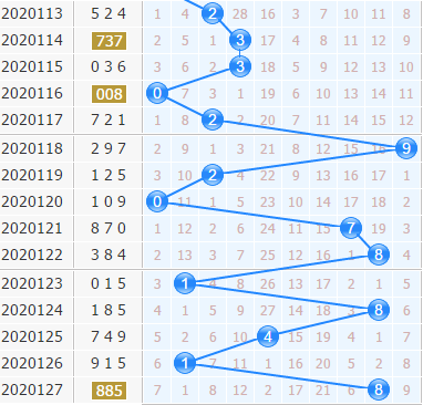第20127期开出了885,十位上开出了8号球,偶数号码继续开出,近期十位上偶数号码连开的机会很大,本期也继续看好偶数号码。4号球就是跟着8号球开出的,重点关注一下;2号球近期开出还不过,可以看好它的出号;6号球作为最冷的一个号码,严防它的回暖。