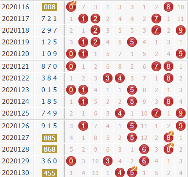 上期开出组三形态455,参考近期的号码形态分析,近期组三形态连续出现,本期比较看好组六形态号码出现。上期开出两大一小组合,和值开出14,两奇一偶组合,一组连号出现,上期出号位置集中在走势图中段位置,整体出号位置还是有右移的趋势,小诸葛本期参考号码走势分析,不太看好大号走势,建议大家主杀,本期具体推荐综合杀三码:279