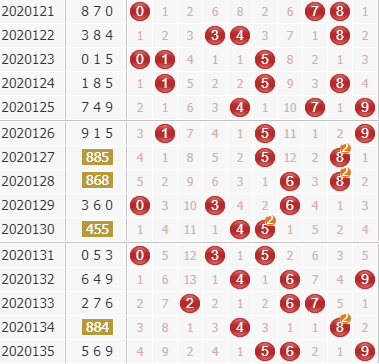 上期开出的是569,组六形态,大大大,奇偶奇。从综合走势图上看,号码当前也是升温的号码,号码整体比较偏热的,4号球空缺了一期,之前连着都是隔期出号的,本期也要看好隔期出号;5号球和6号球都是上期开出的号码,而且近期都有复开的趋势,看好这两个号码。