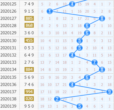 上期开出了950,十位是开出了5号球,奇数号码也是顺利开出,而且近期就是奇数和偶数号码也是交换开出的,本期就看好偶数号码的。4号球和6号球就在5号球的左右位置,而且两个都是升温的开出,本期可以看好两个号码;8号球近期开出也是差不多间隔,本期可以看好开出。