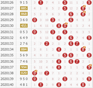 上期开出了号码481,是小大小、偶偶奇的组六形态。结合综合走势图来看,号码三个都是作为邻码的开出的,看来近期邻码真的是一个大热势,5号球和4号球经常结伴开出,5号球有机会作为邻码出号;7号球跟在8号球后面开出机会也很大,本期看好一下。