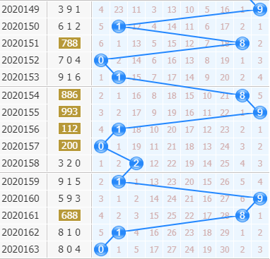 上期开出了804,十位是开出了0号球,振幅开出了1,小振幅开出了,十位上振幅变化就是大小来回的,所以上期开出了小振幅,这一次就看好大振幅了。8号球和9号球都是会跟在0号球后面开出的号码,而且这两个号码或多或少近期都有些升温,出号的可能性还是很大的;6号球在一堆冷号里面,稍微还暖一点,出号机会更大一点,看好6号球。