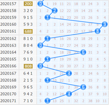 上期开出了710,十位是开出了1号球,振幅开出了3,当前十位号码开出都是小振幅,号码变化不是很大,本期也继续看好小振幅。0号球就挨着1号球的,之前0号球就是作为1号球的邻码开出的,本期也要看好0号球;4号球也是频繁出号的,近期4号球开出还不错,看好4号球;3号球有25期没有开出了,作为冷号本期小防一下。