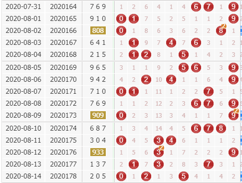 上期福彩3d开奖号码是205,近10期里这三个号码分别开出了2期,7期,8期,属于热号跟冷码,看来冷号开始变形了,那么接下来需要多多关注温码的开出。上期没有开出连号,目前是连续3期没有开出连号了,本期看好连号的表现,重点关注两连号的开出。