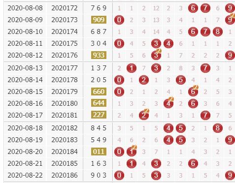 上期福彩3d开奖号码是903,近10期里这三个号码分别开出了2期,1期,0期,看来这三个号码的隔期数非常的短,本期继续看好隔期数比较短的号码,上期开出了一个重复号,本期继续关注重复号的开出。