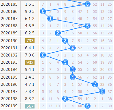 第20199期开出了567,十位上开出了6号球,0路号码的开出,不过当前0路号码连开了两期,跟在后面最后可能开出的是1路号码;4号球是近期开出最热的,本期也要看好4号球;7号球之前是刚刚升温,出号也是加强了不少,看好它的表现;5号球就在6号球的边上,小防邻码的出号。