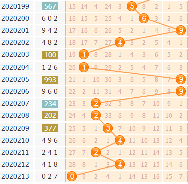 百位上期开出号码0,号码是小号码,接下来出号也是走小的,当前百位上出号都是小号码的连开,接下来继续看好小号码。2号球和4号球当前就是升温的,出号也是有些升温的,看好这两个号码;0号球上期就是开出的,近期百位出号复开有望,看好0号球开出。小孔明本期参考号码走势分析,重点推荐本期百位胆码:0234