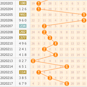 百位上期开出号码6,0路号码的开出,而且这一次0路号码跟之前开出一样,都是伴随着连开的,但是两期之后,还是会交换开出,之前跟在后面的是1路号码,本期就主看2路号码的表现。2号球和5号球就是差不多升温的号码,出号的很有机会;8号球是有19期没有开出的,当前号码有些偏冷,本期也要看好冷号的表现。小孔明本期参考号码走势分析,重点推荐本期百位胆码:1258