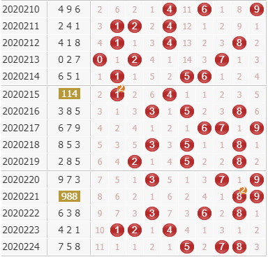 个位:上期个位开出了间隔1期的大偶数8号球,大号码强势开出,没有给小号码连开的机会,本期也有要小防大号码的连开。本期个位推荐号码:015789