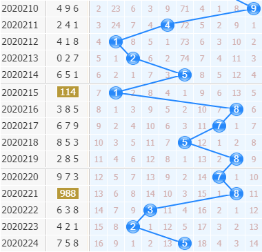 上期十位上开出了5号球,2路号码的开出,而且2路号码近期在十位上复苏了,出号一下子就增强了很多,本期也继续关注2路号码;8号球是升温状态的,开出的状态比较好,有可能出号;1号球和7号球都有跟在5号球后面开出过,本期也要多加关注。