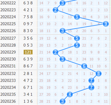 第20236期开出了136,十位上开出了3号球,号码一直是往小的走大,刚好对应了之前缓慢走大的趋势,接下来号码肯定还会继续走小的。2号球开出都差不多间隔的,出号的机会还是很大;0号球和1号球则是两个大冷号,都是空缺了20多期没有开出,十位上冷号近期还是比较活跃的,出号的机会也很大。