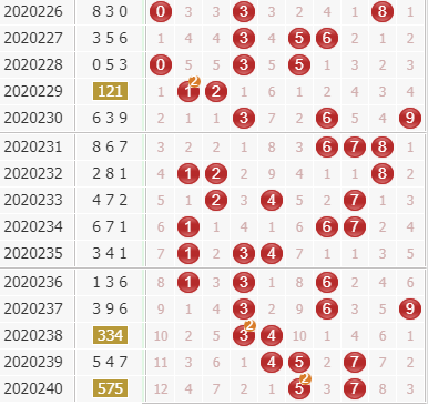 上期开出了号码575,是大大大、奇奇奇的组三形态。结合综合走势图来看,上期两个号码都是复码的开出,这一次也要留意一下复码,5号球上期不仅是连开,还开出了对子号,出号比较强势,重点关注一下;不过号码是冷号的回补,本期也要多留意冷号0号球开出最冷,近期一定要严防。