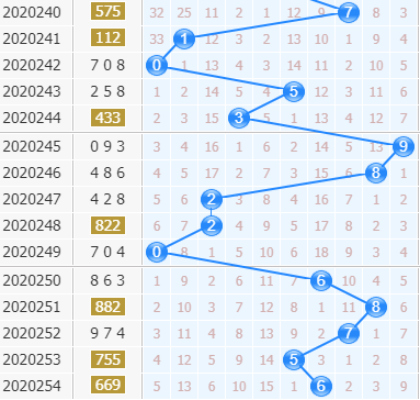 第20254期开出了669,十位上开出了6号球,号码有些小偏转,不过近期号码变化也是比较大的,所以虽然上期是上升的趋势,但是本期更看好号码的反向取值;5号球肯定是升温的,但是幅度没有这么强势,但还是小防5号球的隔期出号;1号球也是在慢慢回温,开出的趋势还不错,多加关注;0号球开出现在也比较稳定,现在空缺了五期,和上一次的开出间隔差不多,有同间隔出号的可能性。