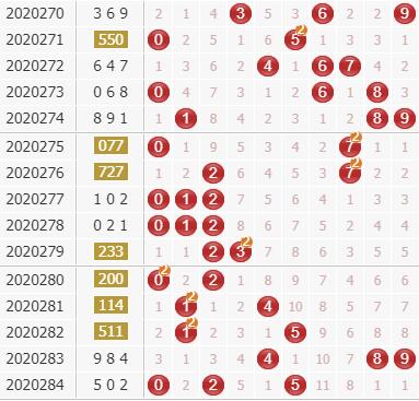 上期开出了号码502,是大小小、奇偶偶的组六形态。结合综合走势图来看,号码上期就还是分散的,但是有邻码的开出,号码也要多留意相邻位置上的取值,1号球就在0号球和2号球的中间,可以重点关注一下;6号球作为冷号,还是要严防。