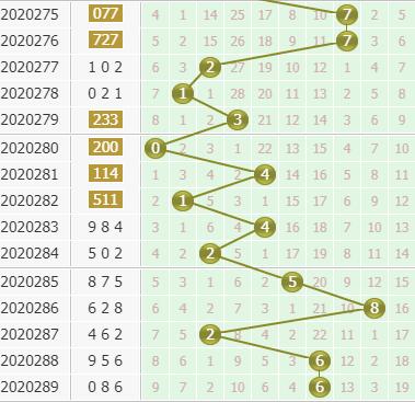 个位上期开出号码6,偶数号码的开出,近期个位上偶数开出非常强势,连着也是有四期的开出的,本期也继续看好偶数的表现;2号球是一个开出还算稳定,也是升温了一些的号码,看好它;0号球开出差不多是八九期的,这一次有九期没有开出,也要多加关注;6号球上期是有连开,个位上号码连开虽然比较少,但是一开出也比较强势,可以继续连开。