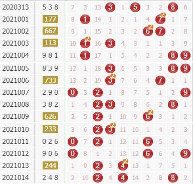 结合走势图来看,号码上期也是有冷号在回暖的,近期号码回暖比较多,7号球就在8号球的边上,而且也是一个小冷号,可以关注7号球;8号球上期刚刚回暖,本期可以看好它的回补开出;近期号码走热都不是很明显,0号球现在还是相对开出比较好的,出号的机会也比较大,看好它的表现。