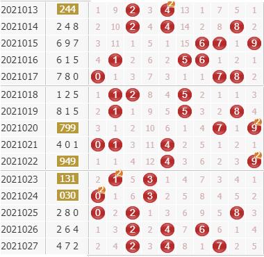 奇偶分析:上期开出偶奇偶的一奇两偶组合,偶数号码继续开出,但是近期还是有望奇数发展的趋势的,本期可以小防奇数号码多开。