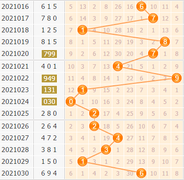 百位上是开出了6号球,号码是走大了一些的,之前百位上出号全是小号码,连着七期都是小号码在连开,上期号码刚刚走大,看来大号码有走热的趋势,小防大号码的连开;7号球和8号球都是空缺了十多期没有开出,出号的可能性比较大;9号球开出都是在九期左右的,现在有八期没有开出,1小防一下。具体推荐百位胆码:0789