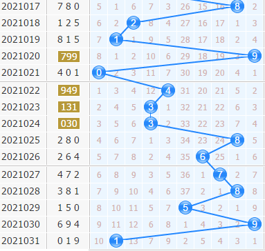 上期十位上开出了1号球,是1路号码的开出,但是1路号码开出后面跟着从来不是1路号码的连开,不是2路号码就是0路号码,加上1号球上期是作为一个冷号开出,同样0号球和2号球空缺期数也是十期多,很有可能会作为冷号的开出;3号球之前出号的趋势还不错,本期也要小防一下。