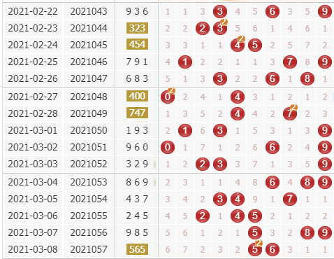 上期开出的是565,组三形态,大大大,奇偶奇。从综合走势图上看,号码上期也是升温的,号码都是在走热的,本期也要看好号码的走热;9号球是近期的热号,开出也很强势的,看好9号球的表现;4号球当前出号也很稳定,开出的可能性很大,看好它;5号球当前还在连开,而且连开很强势,继续看好5号球的出号。