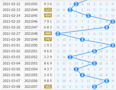 第21057期开出了565,十位上开出了6号球,偶数号码连开,不过上期算起来是偶数号码的三期连开了,接下来就要看好奇数号码的表现了,5号球确实是一个冷号,不过开出都差不多十多期的间隔,有机会开出;7号球是一个大冷号,空缺了20期,严防它的开出;9号球这一次也是在降温的,不过现在是有回暖的机会,建议小防。