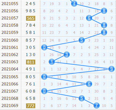 第21069期开出了772,十位上开出了7号球,也是1路号码的开出,不过现在十位上开出最强势的是0路号码,重点关注0路号码的表现;0号球开出是最热的,都是小间隔在出号,本期也关注0号球;3号球现在是7期没有开出,上一次也是间隔七期出号的,重点关注;8号球就在7号球的边上,小防邻码的开出。