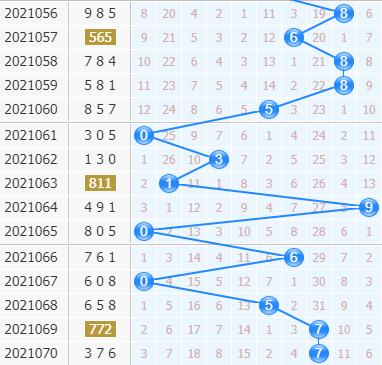 上期十位上开出了7号球,号码还是大号码,这一次大号码连着也是有三期开出了,开出比较强势,接下来继续看好大号码的连开,上期号码是复开的,之前则是走大的开出,本期号码反向的可能很大,6号球就在旁边,开出的可能性比较大;5号球则是在升温的,看好它的走热;3号球开出差不多是七八期的间隔,这一次有八期没有开出,小防一下。