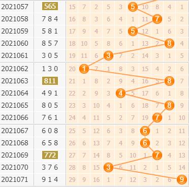 百位上期开出号码9,大号码也是又一次开出,小号码没有连开,出号也是围绕着大号码的,本期也要看好大号码的表现;8号球现在有六期没有开出,之前8号球最冷也是间隔六期开出,本期看好8号球的回暖;7号球最近都是小间隔出号的,回暖的可能性很大;9号球刚刚回暖,本期小防一下复开。小孔明本期参考号码走势分析,重点推荐本期百位综合胆码:2789