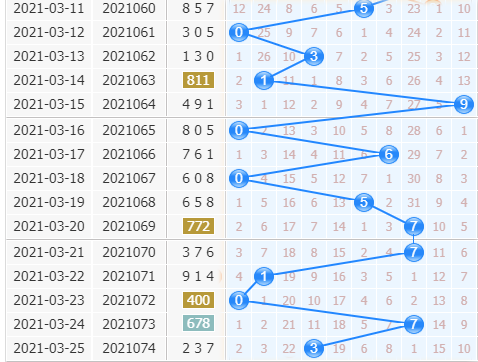 十位上期开出号码3,小号奇数号码出现,十位奇数号码目前连续开出两期,整体出号位置还是比较分散的,后期预计出号位置会大幅度右移,本期建议大家重点关注中大号出现。太阳风本期根据十位杀号公式:上期开奖号码跨度加和尾之和取个位杀本期十位一码:5+2=7,本期十位重点推荐杀一码:7