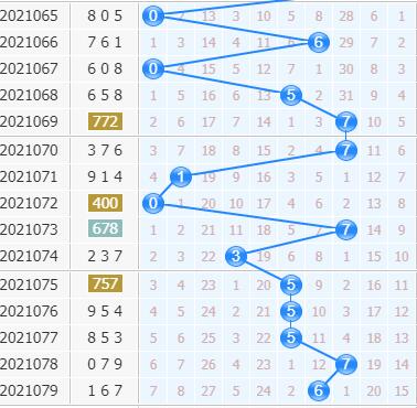 十位上期开出号码6,大号偶数号码出现,十位大号目前连续开出五期大号,后期大家还是可以继续关注中大号走势,后期偶数号码连续开出的几率还是比较大的,建议大家重点设防,不太看好本期小号位置号码走势,太阳风本期根据十位杀号公式:上期开奖号码跨度加和尾之和取个位杀本期十位一码:6+4=10,本期十位重点推荐杀一码:0