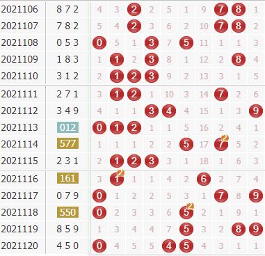 根据多年来对组选杀号经验,结合走势表现看,对比0号球的热切表现,1号球目前热度开始处于消退中,本期不看好1号回补;5号球已经持续开了3期了,按照目前出号连开规律看,以3期连开居多,本期不看好5号继续出号;8号经过之前8期的遗漏,目前出号节奏变慢,隔期出号几率不大。